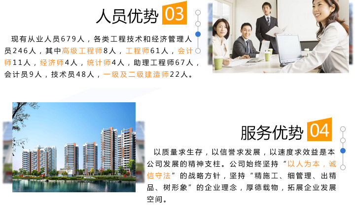 質(zhì)量求生存,以信譽求發(fā)展,以速度求效益是本公司發(fā)展的精神支柱。公司始終堅持“以人為本,誠信守法”的戰(zhàn)略方針,堅持“精施工、細管理、出精品、樹形象”的企業(yè)理念,厚德載物,拓展企業(yè)發(fā)展空間。 我們將繼續(xù)堅持“質(zhì)量第一、用戶第一、信譽第一”的宗旨,以最優(yōu)惠的價格,最優(yōu)質(zhì)的產(chǎn)品和最完善的服務來滿足廣大用戶的需求。依靠創(chuàng)新和優(yōu)良的品質(zhì),出一流產(chǎn)品,創(chuàng)一流效益,與您共創(chuàng)美好燦爛的明天! ...